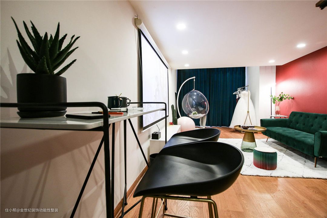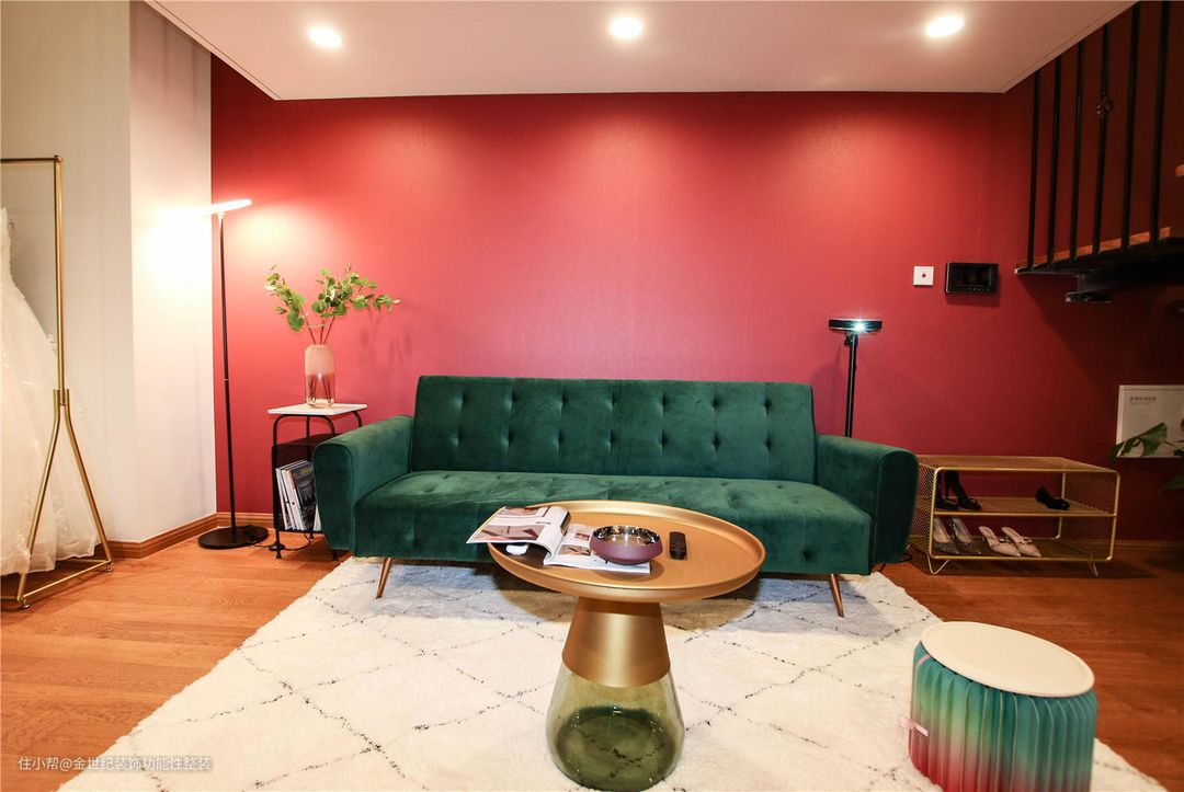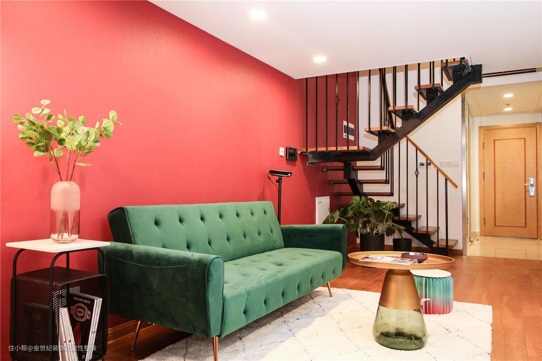 大连远洋钻石湾55平loft装修案例,红绿撞色竟美得如此高级