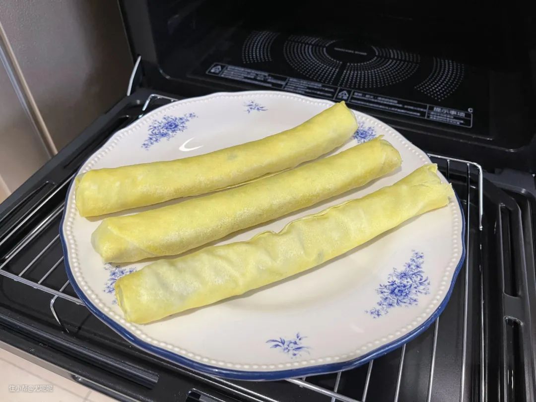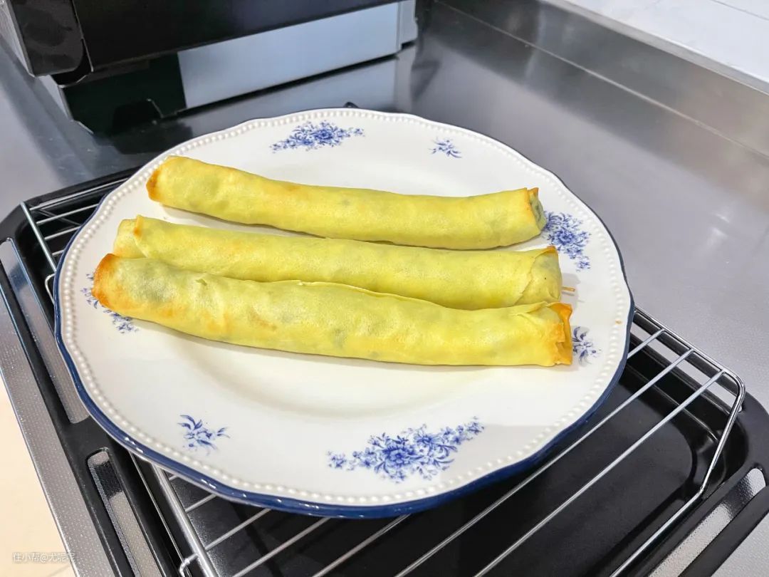 这是刚刚从水波炉中取出的春卷,可以看到春卷两侧略焦就像炸过一样,整个春卷外壳其实也是比较酥脆的,所以说通过“过热水蒸气”程序,这款水波炉实现了空气炸效果。