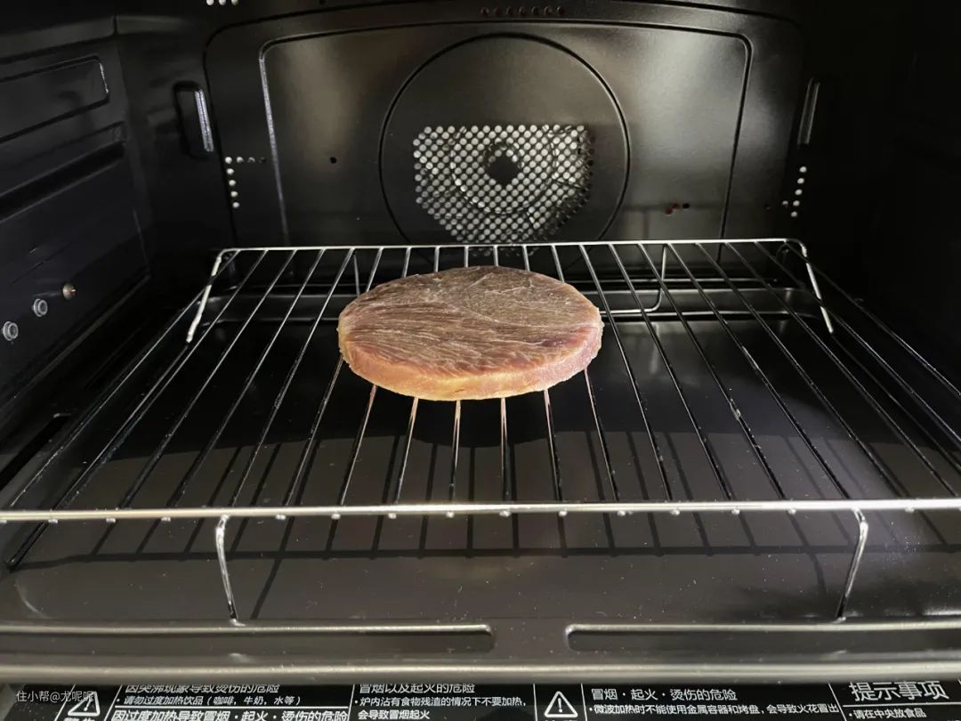 烘烤温度为250℃需要提前预热,预热后直接把牛排连同烤架放入下搁架加热9-12分钟即可。