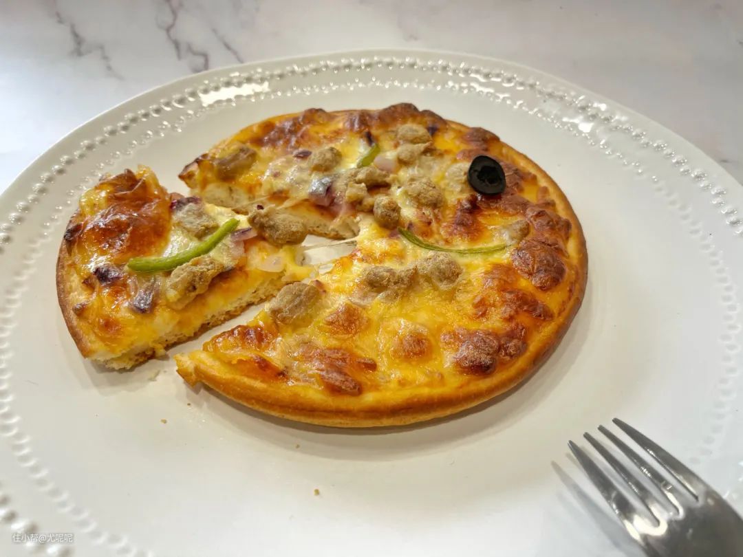有了烤箱后,烤披萨也可以在家轻松搞定了,把比萨直接放到烤盘中,选择烘烤程序350℃,冷冻披萨烤12分钟,鲜披萨烤5分钟,十分的简单。