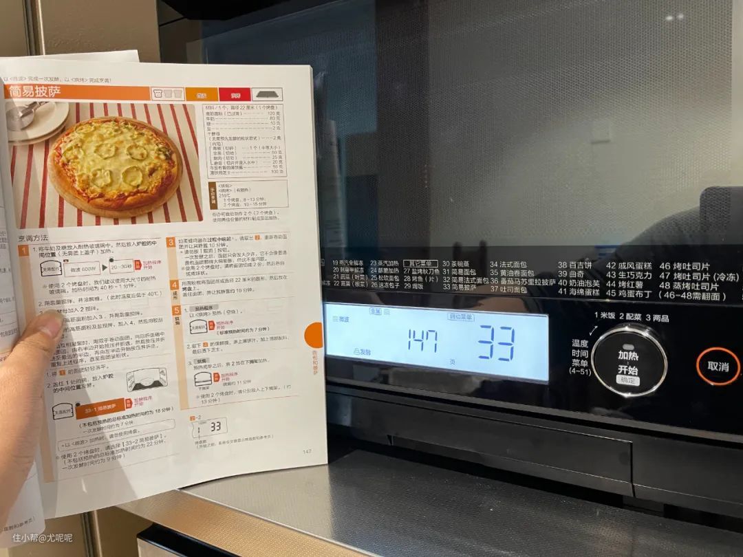 而这本实体菜谱更人性化的地方在于,当你在机器选择自动菜单时,屏幕上会直接显示这个菜在实体菜谱的第几页,可以让你瞬间找到对应配料与步骤。并且在使用自动菜单时不需要设定时间和温度,就可以直接按下开始按键直接进行自动菜单的烹饪。
