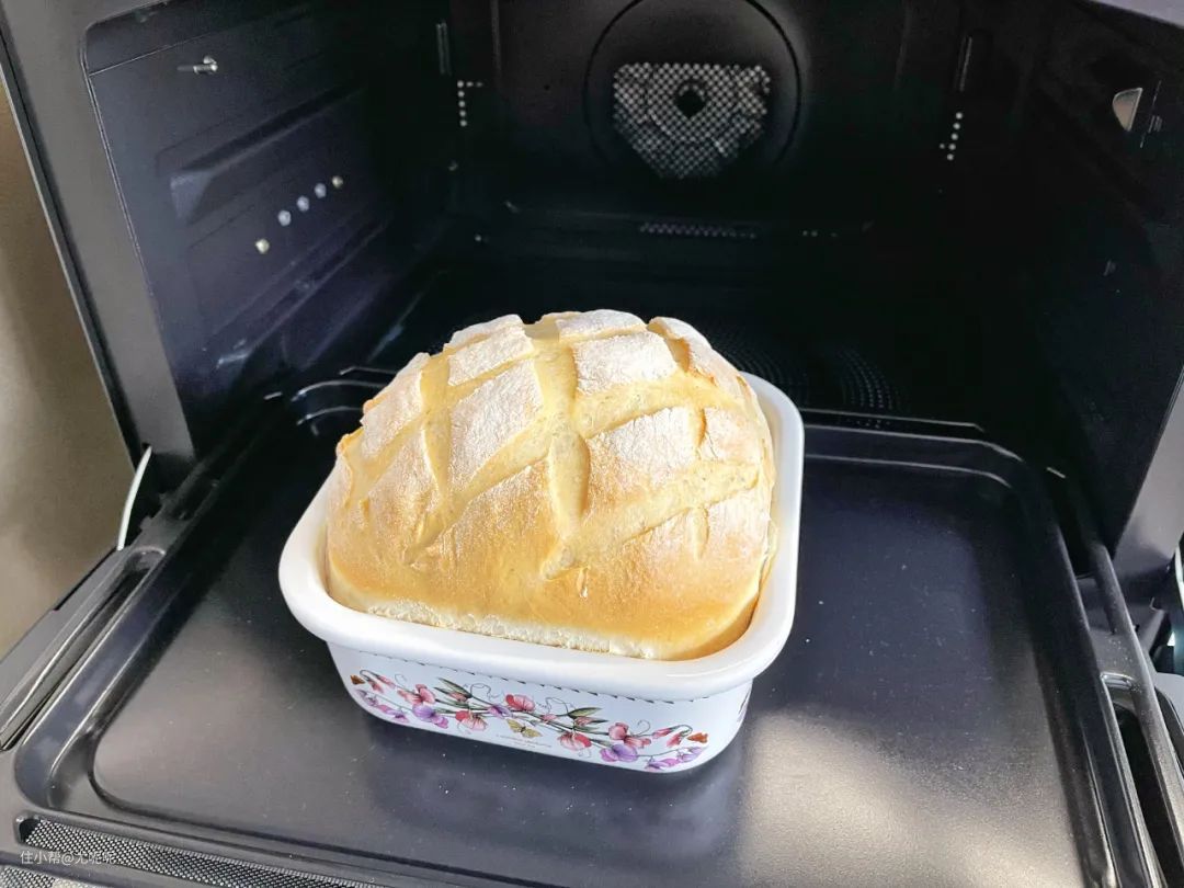 石窑烤面包同样也是有自动菜单的,选择自动菜单 34法式面包,预热11分钟后把发酵好的面团放入加热28分钟即可。