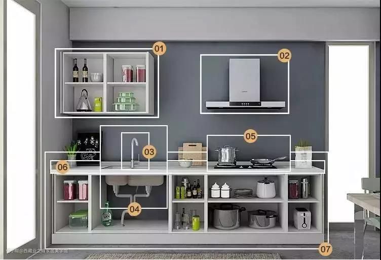 一般家庭的橱柜都分为以上几个区域,每一个区域都有自己的责任,严格的按照区域收纳,避免空间杂乱。