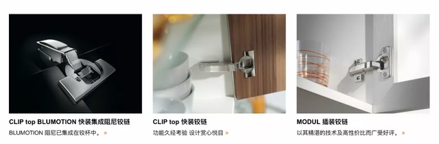 奥地利百隆blum,很多大牌橱柜都用它家的铰链、滑轨等五金。
