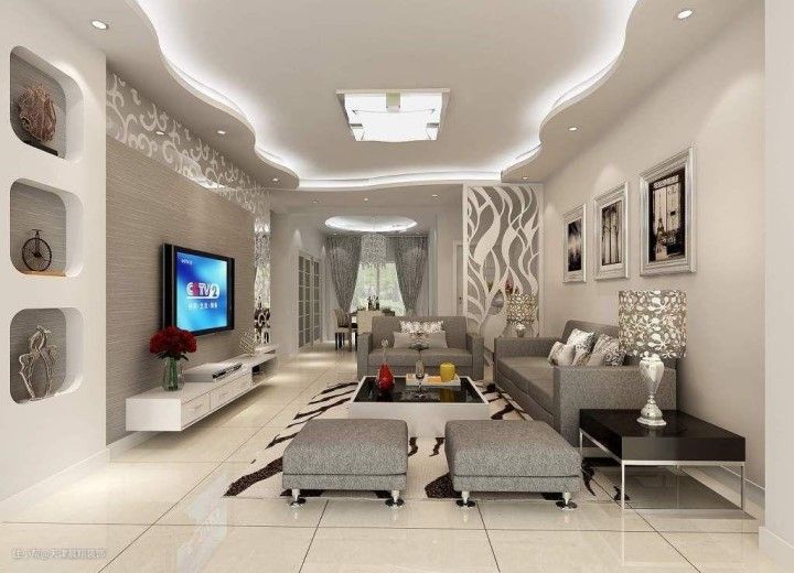 6、客厅吊顶能够由凹凸造型、调配接接光源,形成光影层次感的参差旨趣,非常契合现代感的客厅规划。