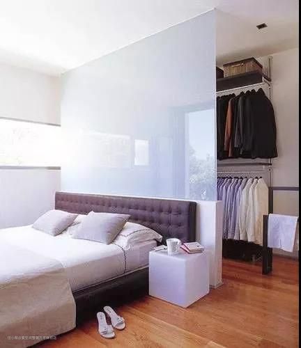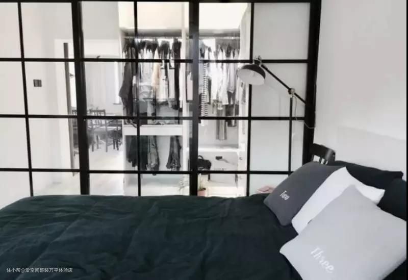 普通主卧、大一点的次卧,可以抛弃传统衣柜,换种形式,就能拥有步入衣帽间。