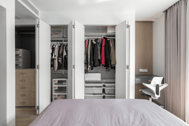 悄悄告诉你们,我最不后悔的就是装了这个折叠门+艾格特衣架组合的衣柜,收纳效果直接看图,是不是很赞,而且高级感十足。