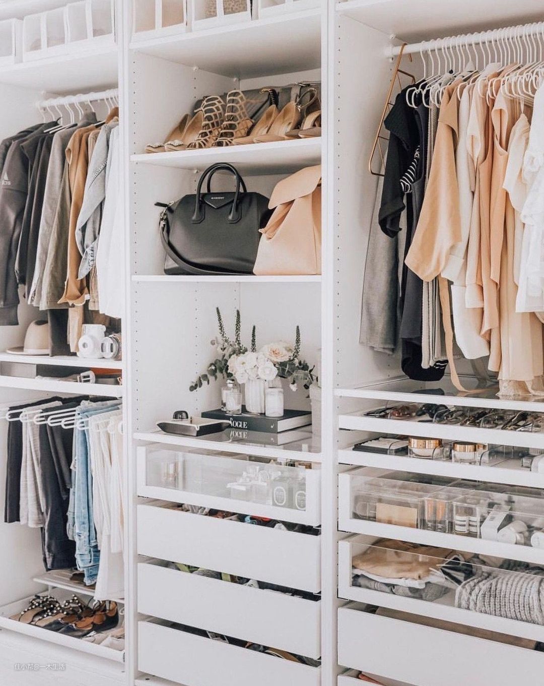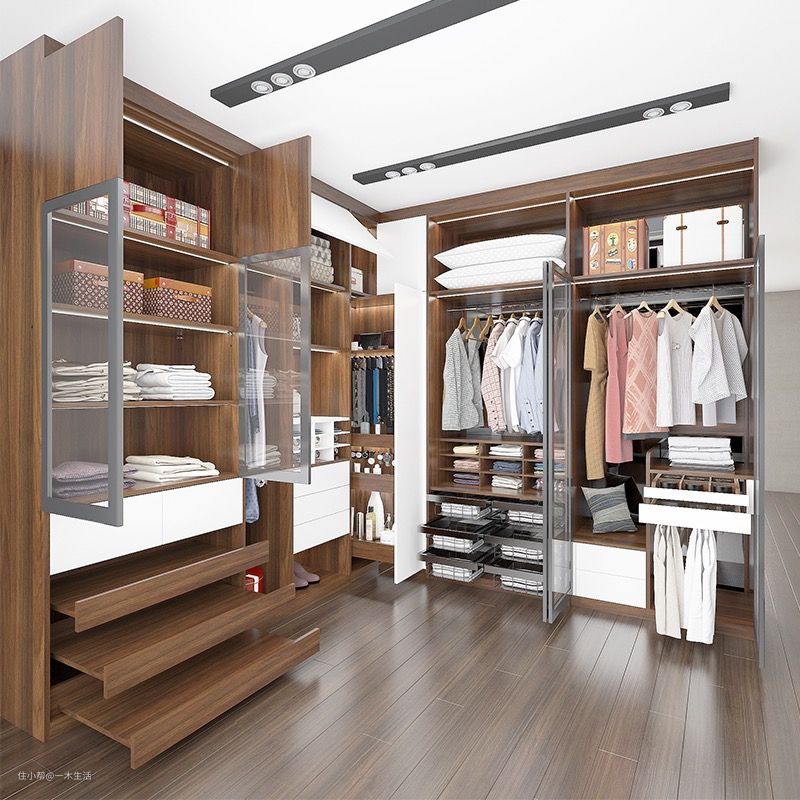 与其被各种隔件束缚,不如拆掉,重新布置。根据个人需求及物品放置的特殊性,量身定制衣柜内的收纳架构,例如增添可移动抽屉、脏衣篮、饰品挂袋等物品。