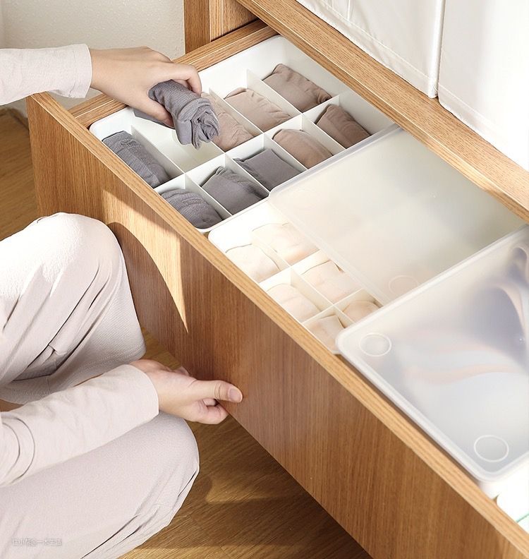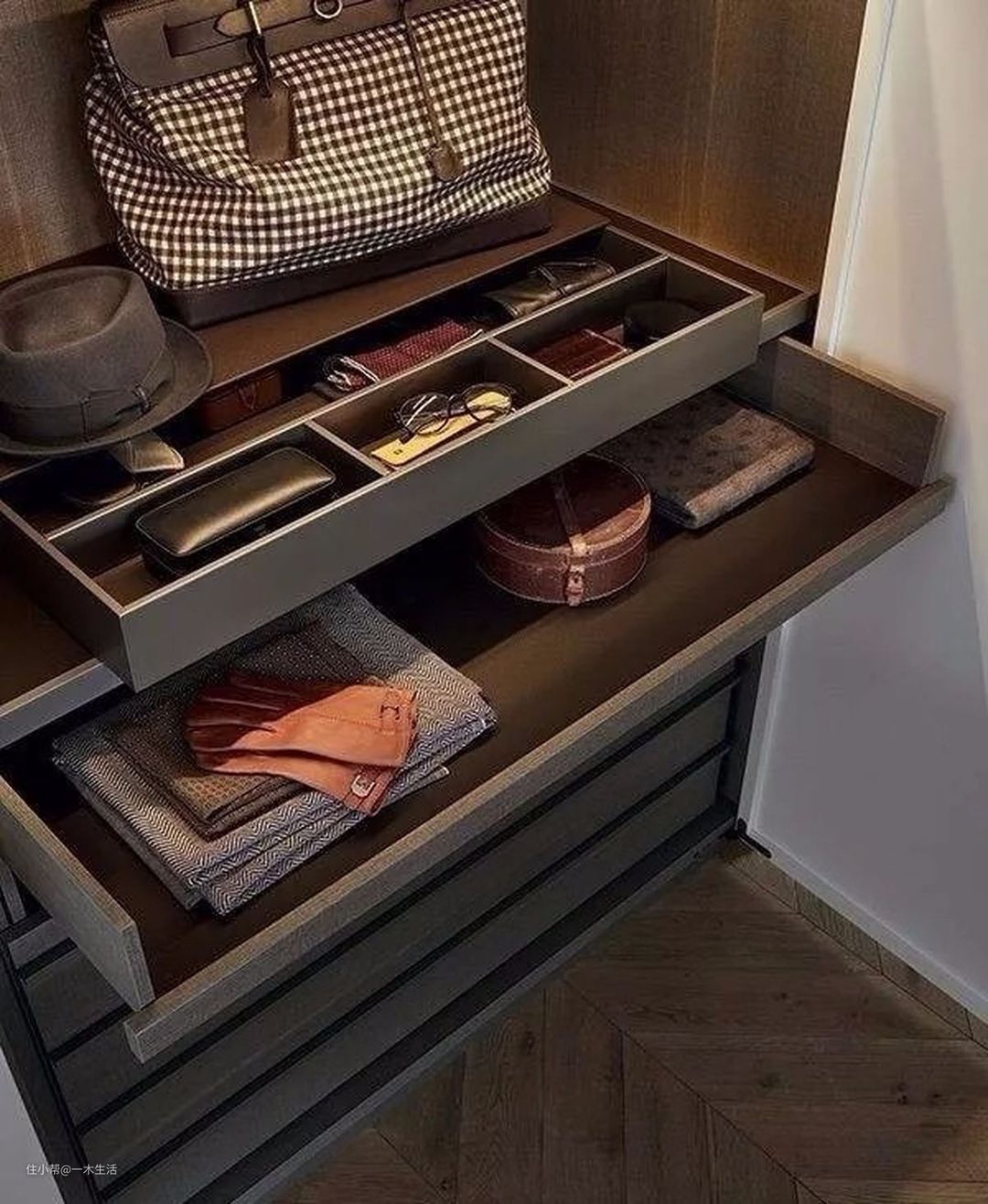 而对于不同的衣物,例如袜子、内衣等,我们还可以采用不同的抽屉分隔,使每一个小物件在衣柜抽屉中都能得到清晰、规范的收纳。