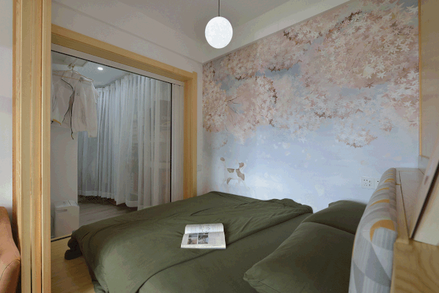 这套房子,有一个让我非常喜欢的地方,就是仅50平米的房子,设计师竟然规划出了一个衣帽间!做法也是举重若轻——将原来卫生间和房间之间的墙壁做了一个封闭处理,然后再紧挨着卧室,将与之相对的区域做成了衣帽间。这个做法不仅很好地重新布局,更能防潮隔味,非常卫生,深得我心。