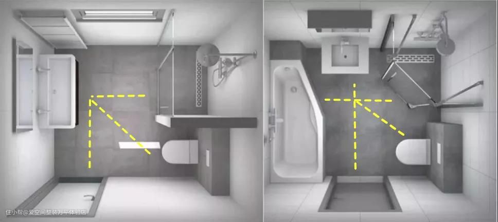 最内侧的不规则凹墙全部划归为淋浴区(俯视图)