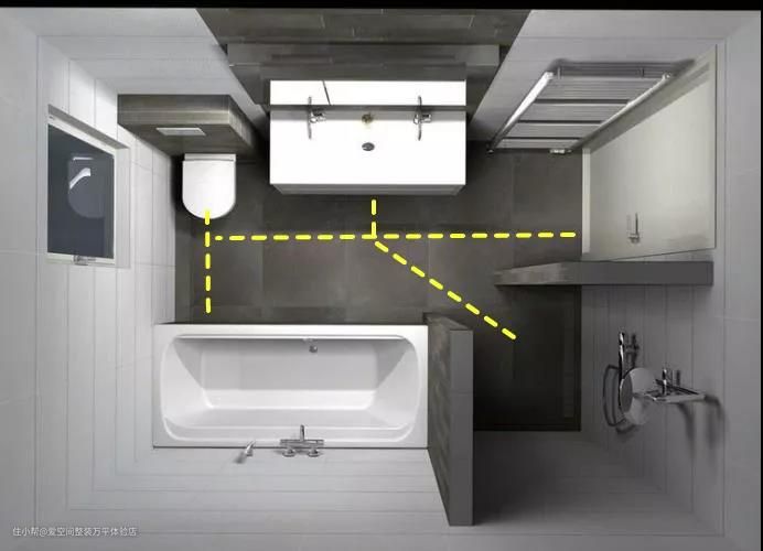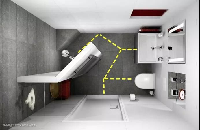 卫生间做包管之后形成的不规则墙,可以做隔湿效果更好的“一”字形隔断,形成独立浴室。