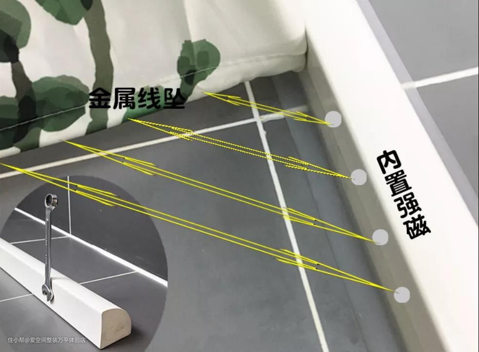带磁的挡水条千万别选明磁的,内置磁块更卫生,某宝有售。最好在浴室做地砖前就预备好。