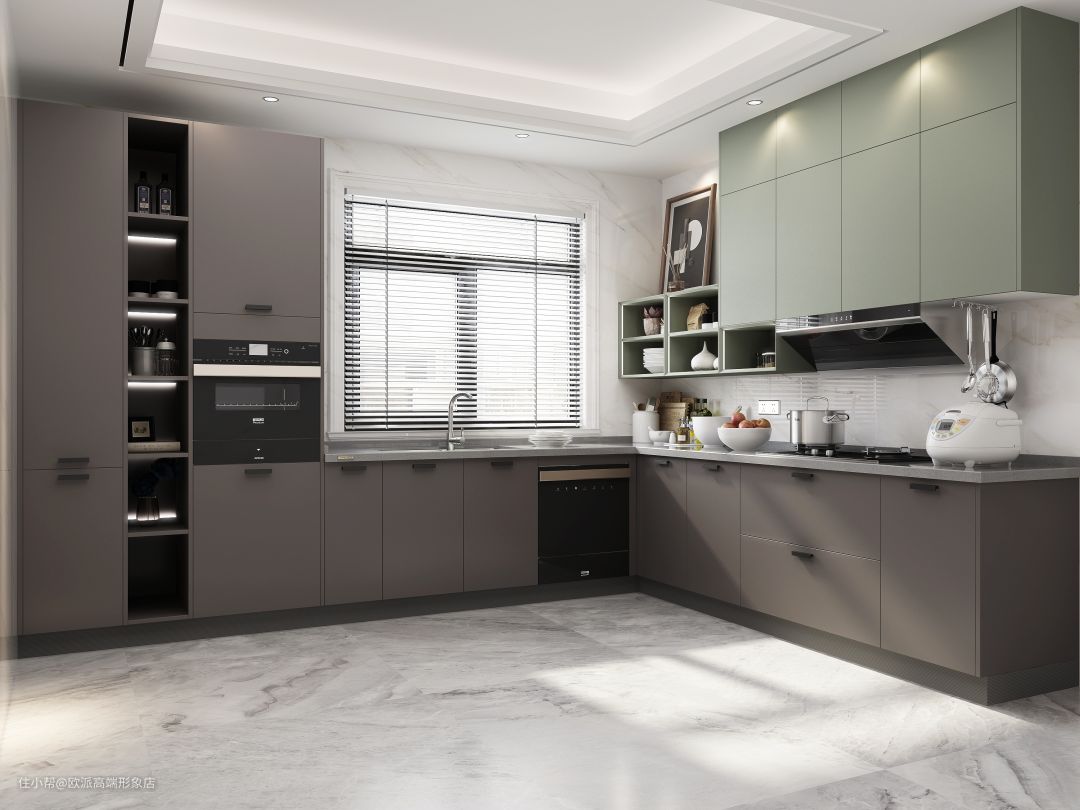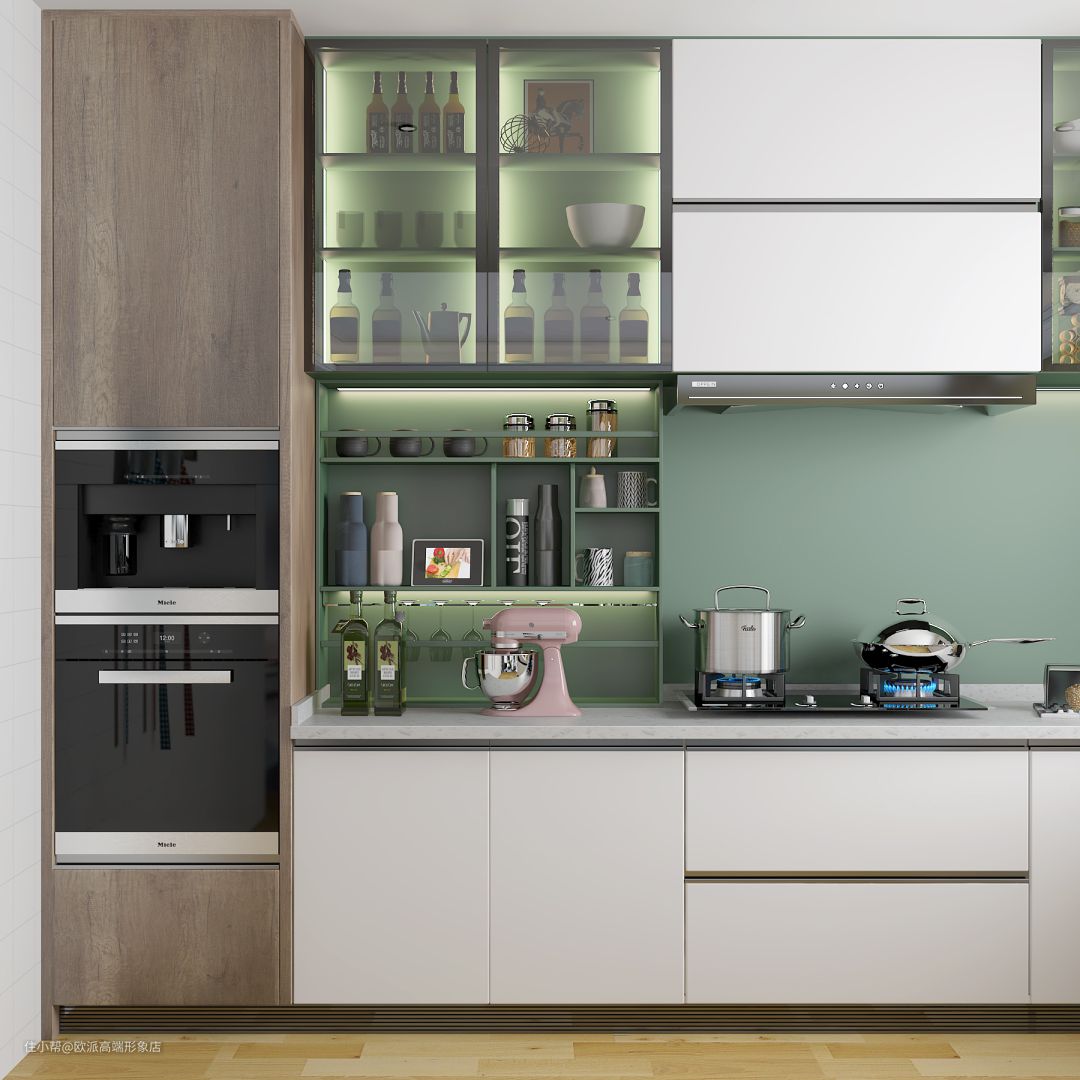 ▲将冰箱、洗碗机、烤箱等设置为嵌入式,腾出台面空间的同时不浪费上方的存储空间。