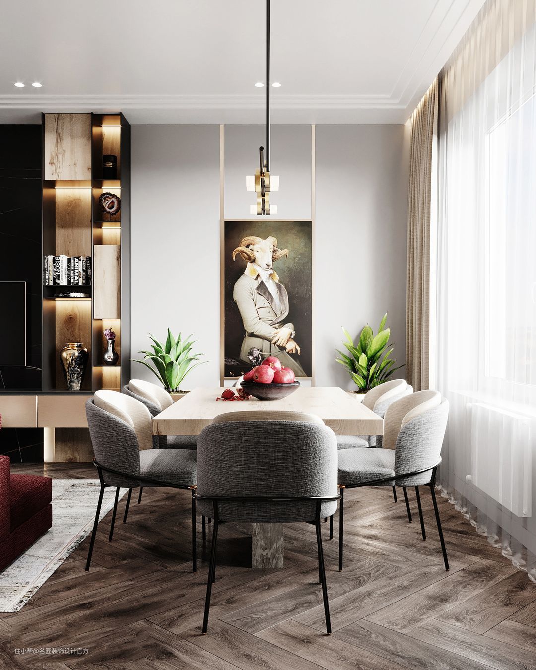 在室内空间设计餐厅装修中,除了考虑餐厅的位置,还要考虑餐厅的内部元素。比如客厅的餐桌这一家具的摆放位置和选择。