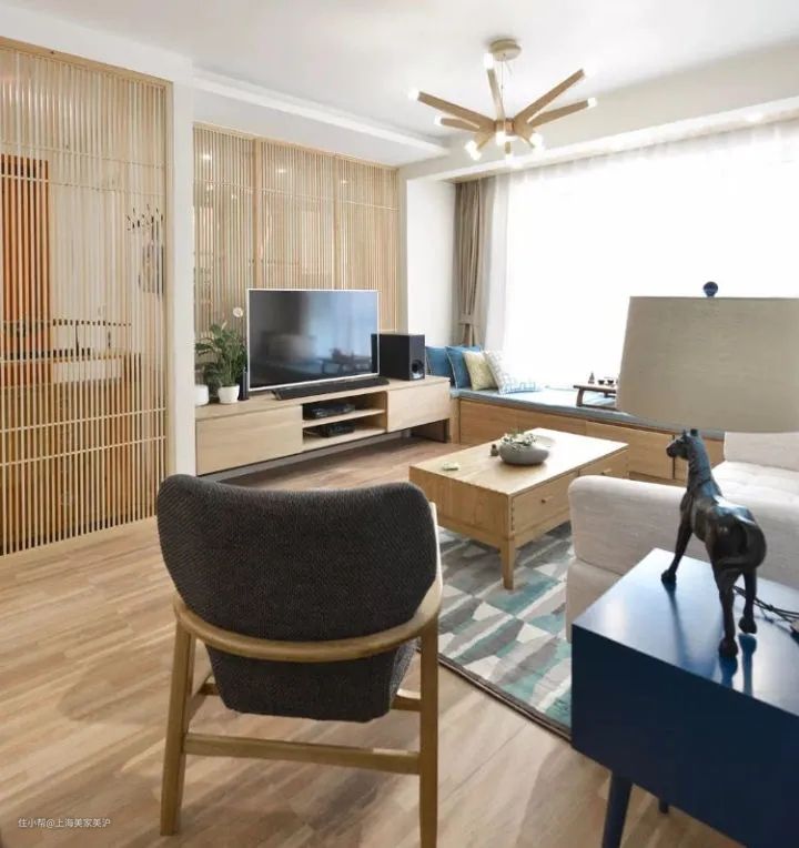 △原木色总是让我们能第一时间想到日式风格,简单、简约,立柜的展示部分建议不要放太多东西~