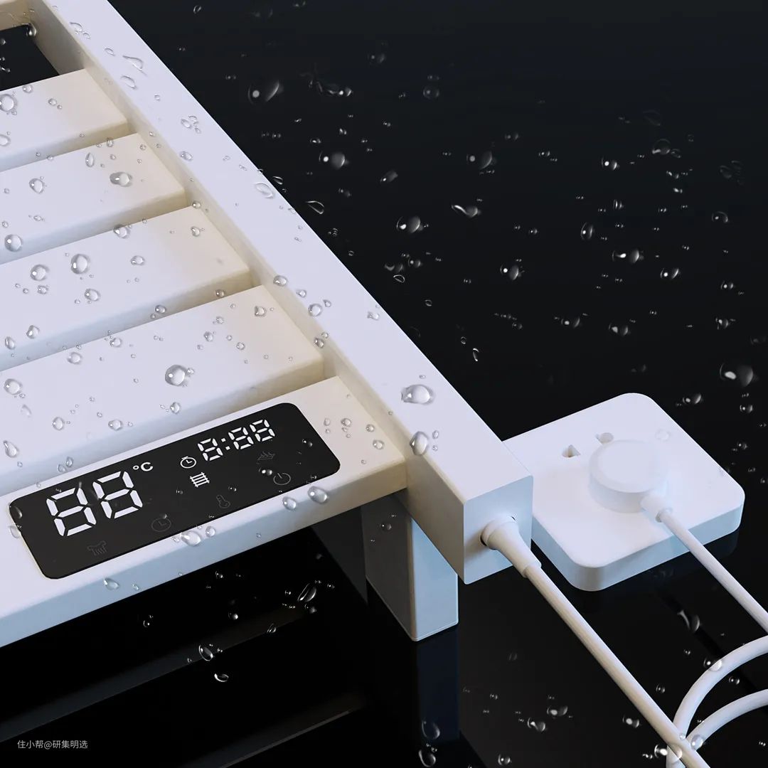 架体使用碳纤维材质,每天上下班回来开启烘干毛巾,3个小时候也仅耗1度电,关键是温度达到后也不烫手,有效防止家里的老人孩子触摸烫伤。