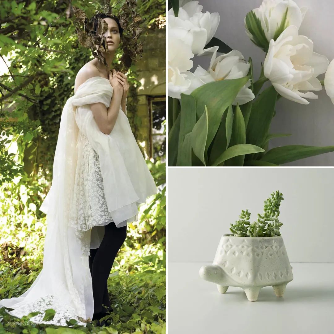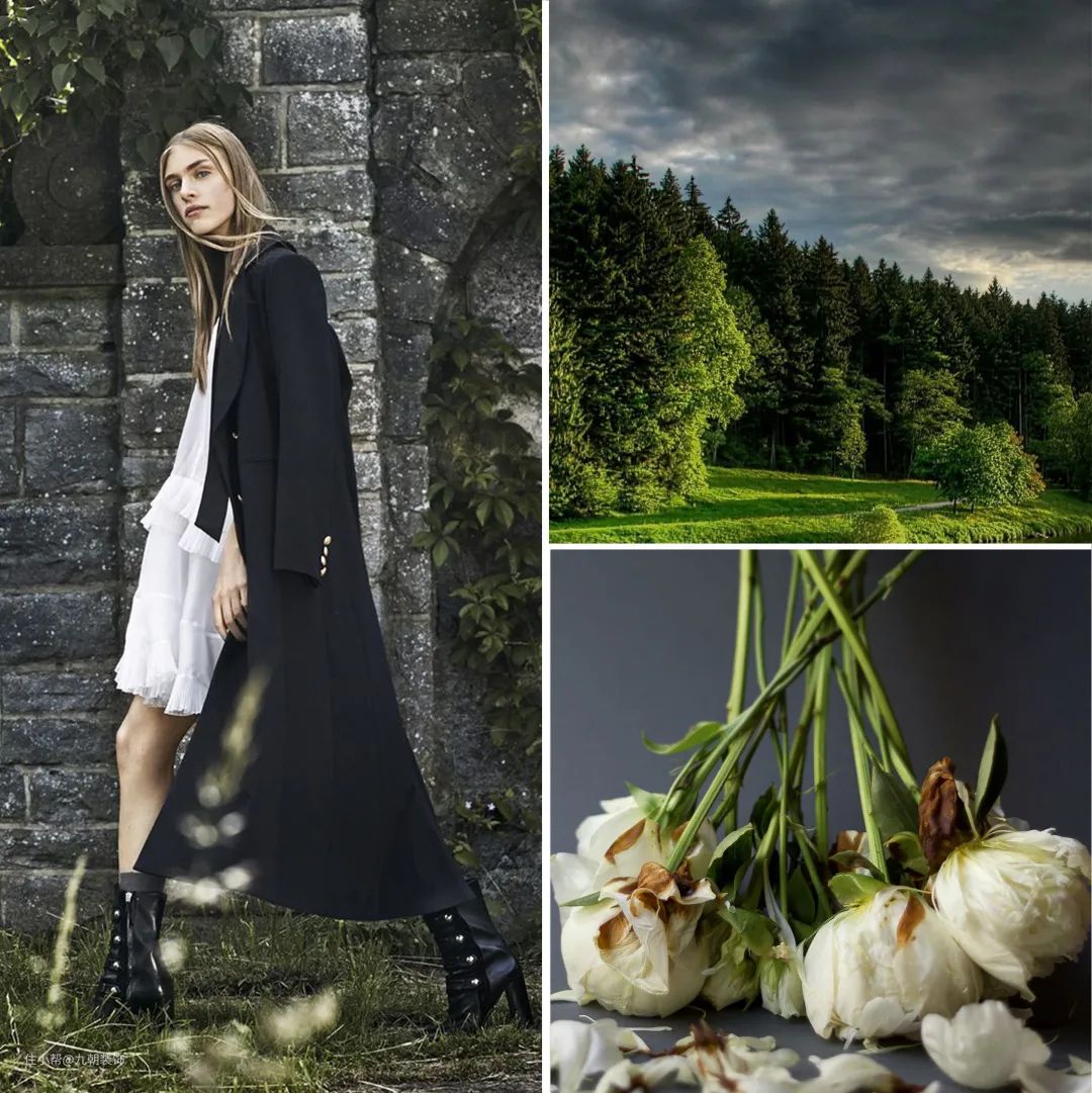 大地色调的树梢绿充满包容和接纳性,与同样包容且经典的高级灰搭配,犹如在灰暗沉静之中绽放了一朵悦活的生命之花,满富自然活力,又优雅矜持。