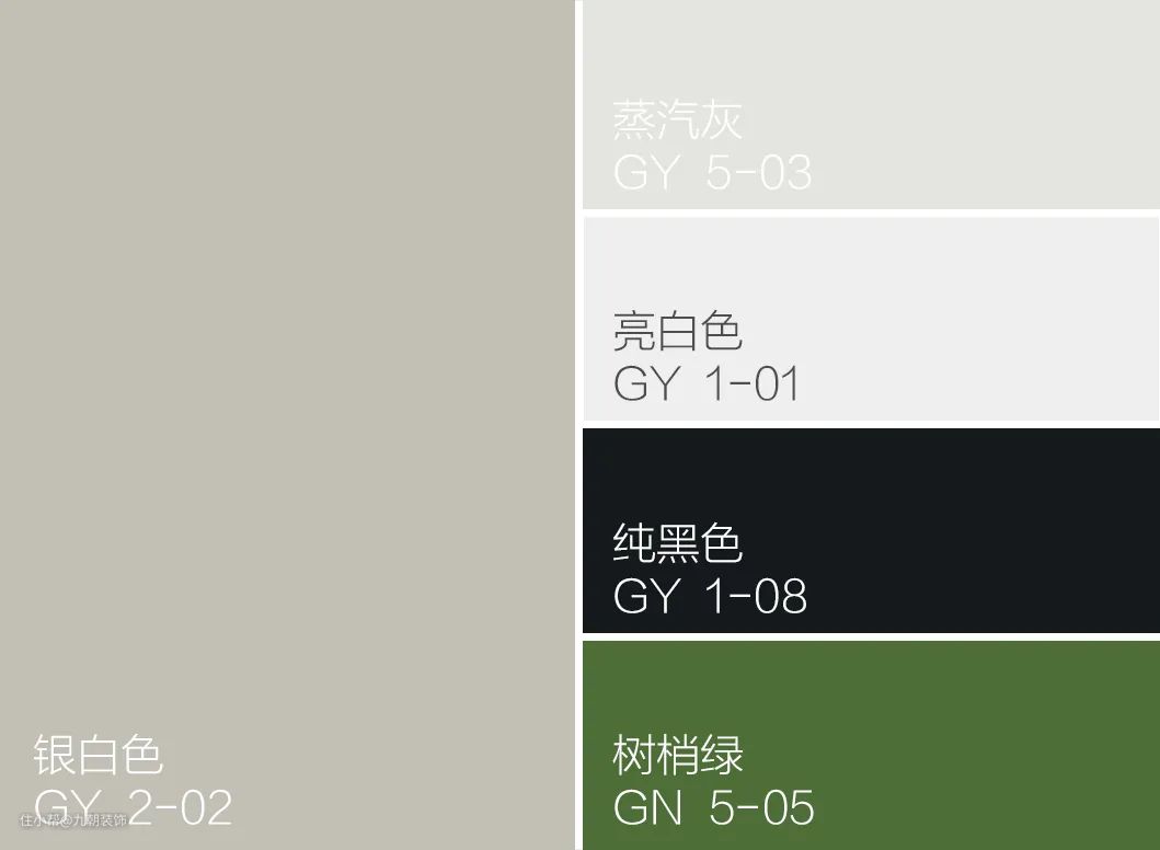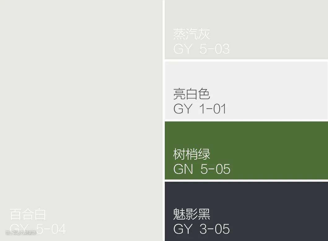 色卡:百合白+蒸汽灰+亮白色+树梢绿+魅影黑