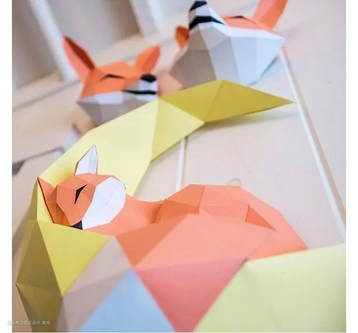 20 ) 北欧风立体狐狸月亮 DIY 纸艺壁饰