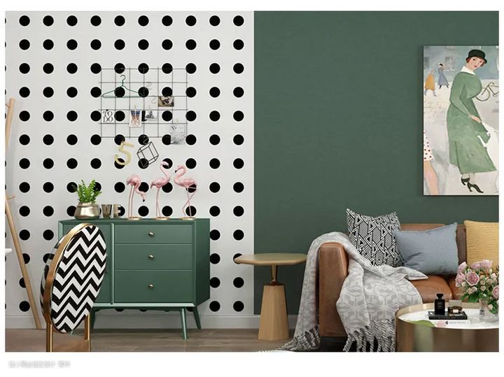 墙面拼色在INS风的带动下,早已火红多年,不如试试这款波点的墙纸与灰绿素色、或脏脏粉的墙面一同搭配,出乎意料的耐看。