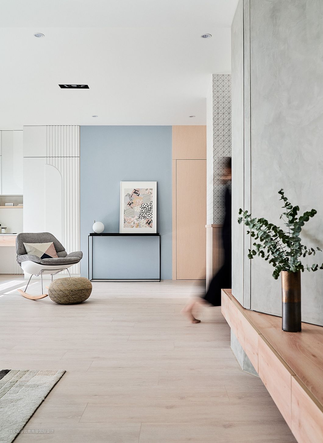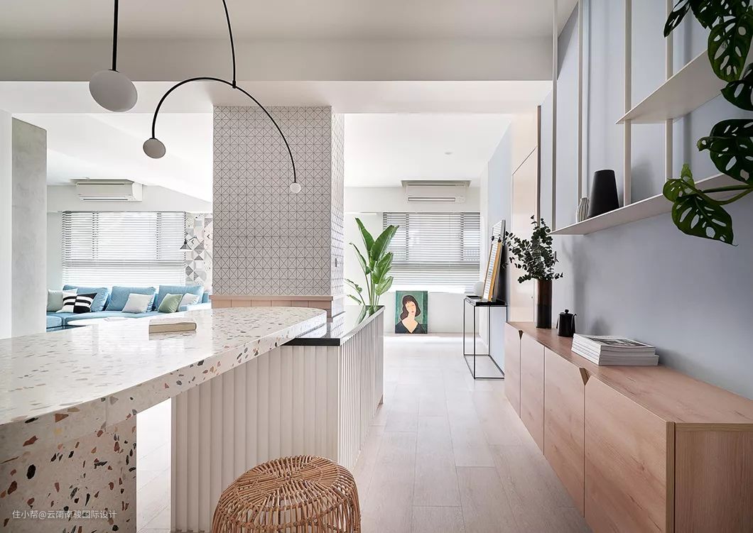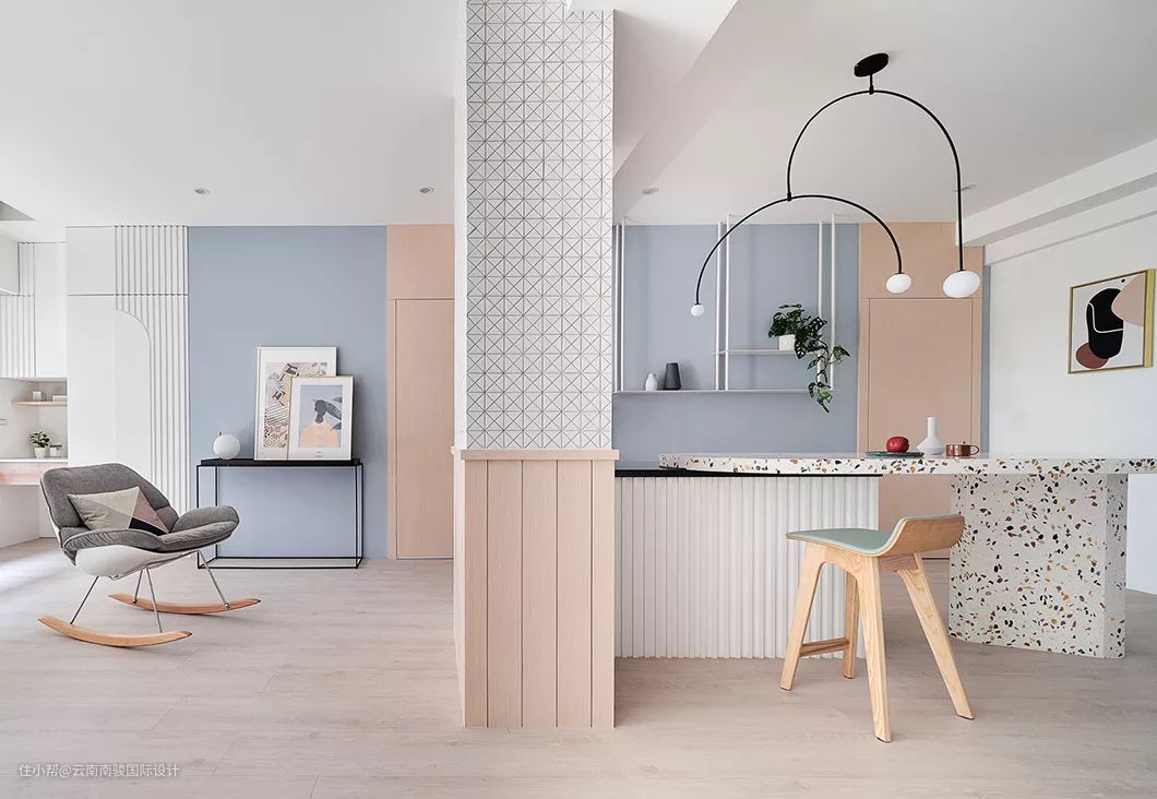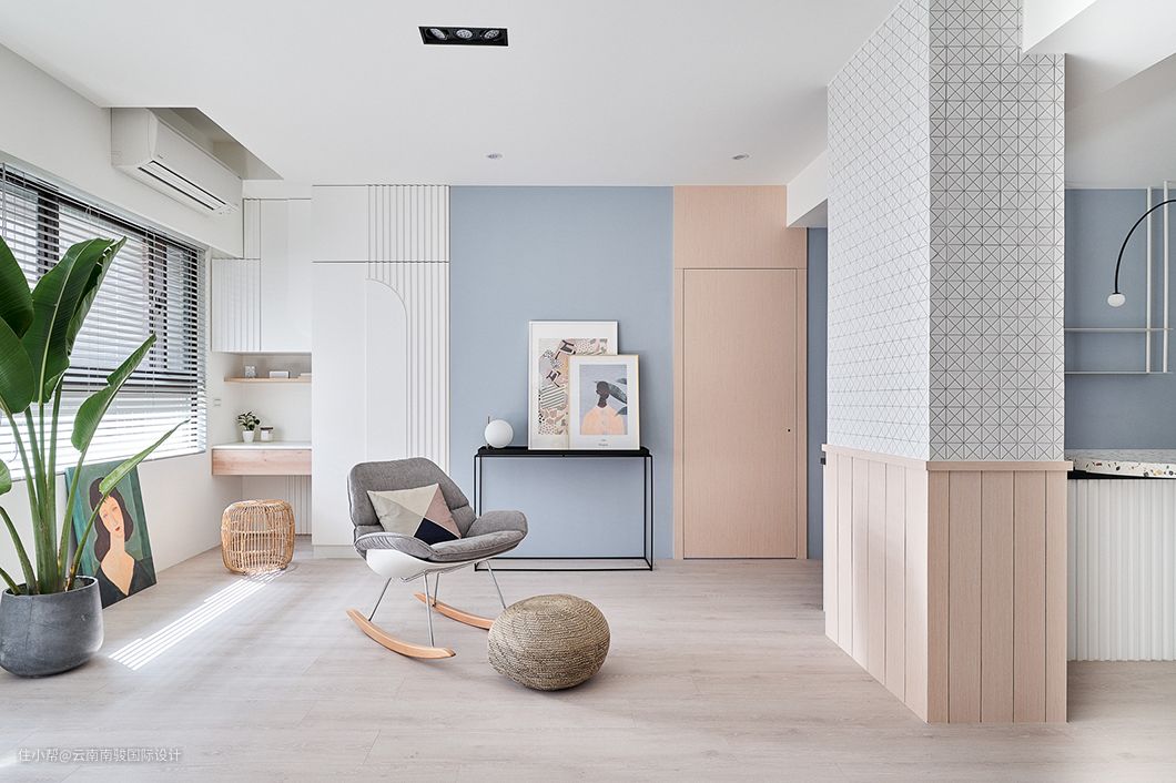 我们将居家所需俐落且优雅地收存于各处,期望勾勒「流动」的意象,妆点微甜而令人能悠游其中的梦幻境地。