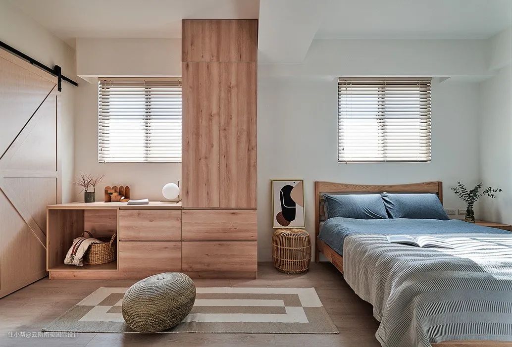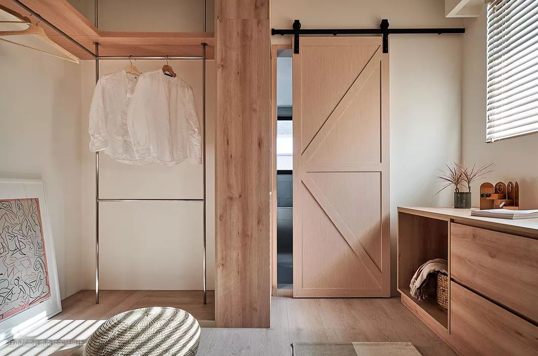 窗边有个小巧、结合几何图线构成的隐藏柜工作区,占地虽不大,功能一应俱全,即使处理个人事务,仍与家人共聚同个场域。