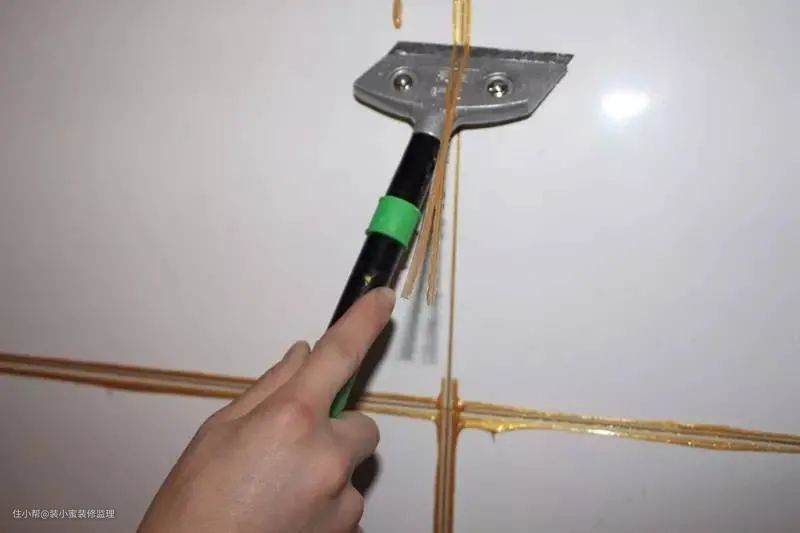②已经干掉的美缝剂被美纹纸带出,需要重新填补。