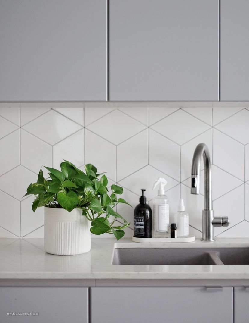 翻车的是,本来瓷砖就是白的,结果填缝师傅未经同意又用了同款白色,结果完全看不出来菱形拼贴。