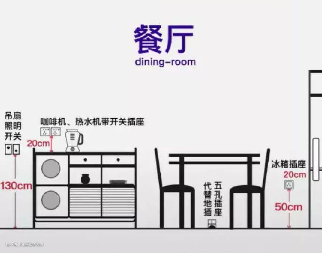 3. 餐 厅餐桌旁一定要预留一个五孔插座,方便随时可以在家吃火锅等。