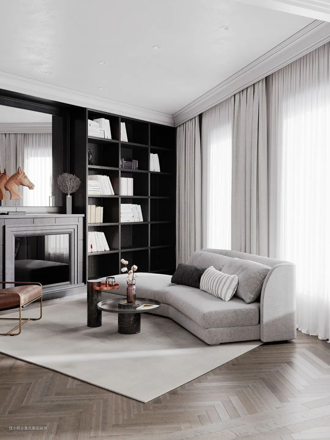 经典的黑与白,上下两部分墙面色彩区隔,简单而前卫,地转也选择黑色,与下半部墙面融为一体,充满灵感的炫酷设计将人们带入黑白想象空间,适合面积较大的浴室空间。