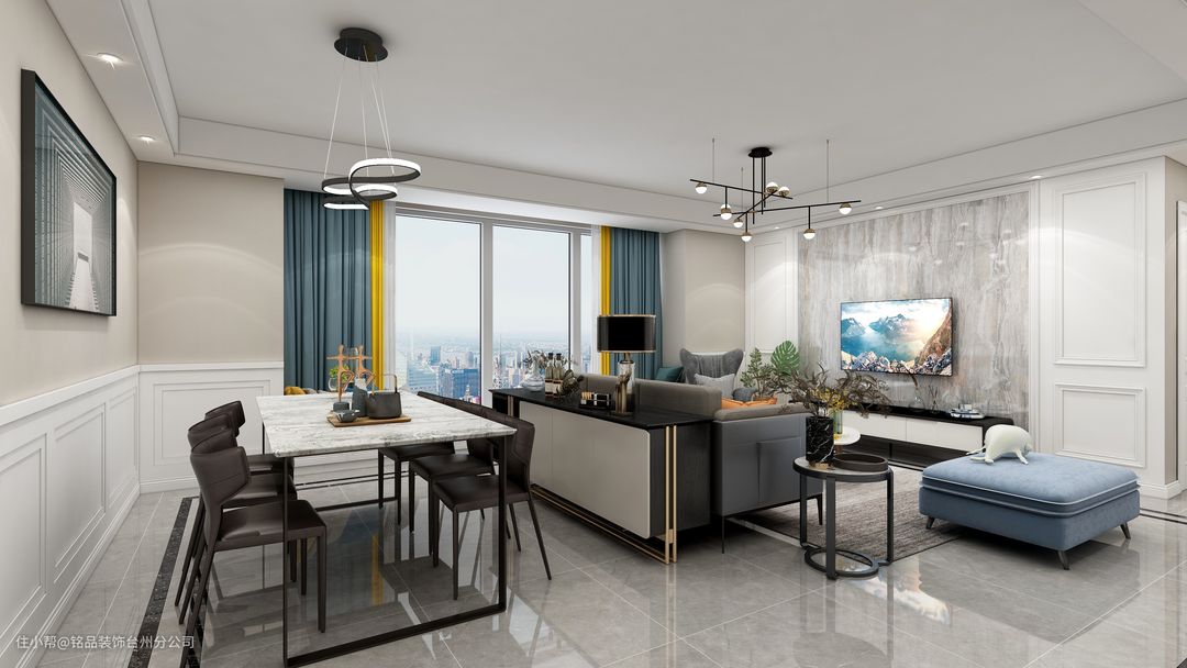 吊顶选择吊平顶较多,推荐简约就好。客餐厅区域,人工、材料费用约为100元/㎡。