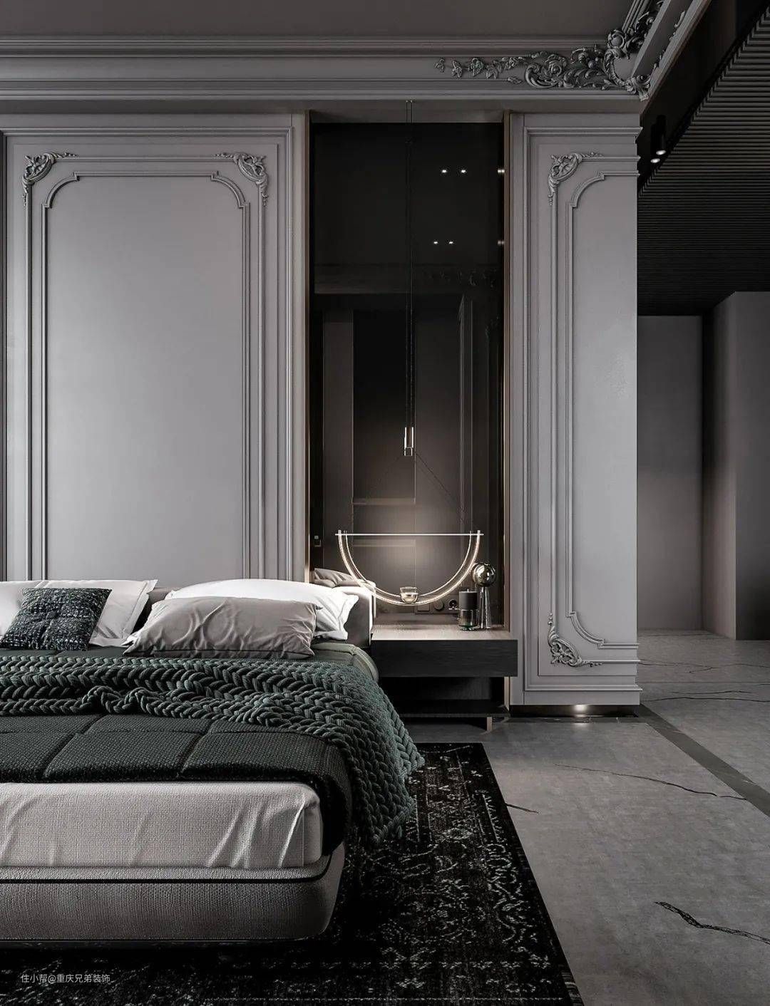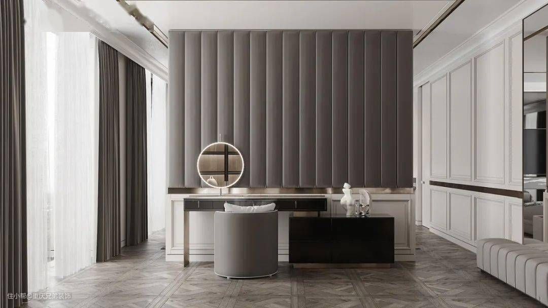 精致生活的定义,一定不是仅仅满足于舒适,而是需要保留仪式感和对细节的关注。在条件允许的情况下,越来越多的设计师倾向于在主卧的入口处增加独立的小玄关。