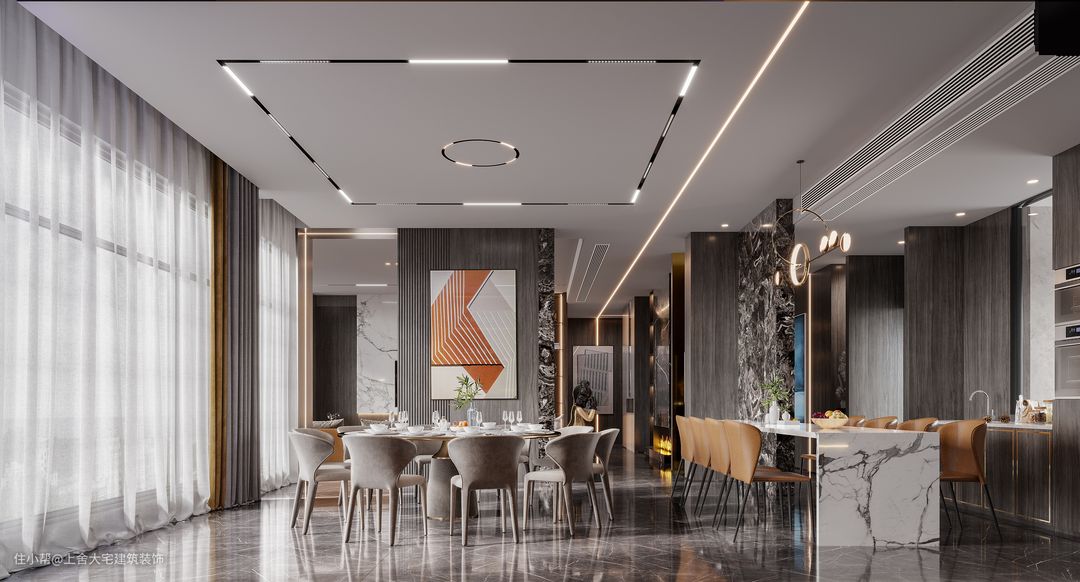▼The proper combination of material and temperature, half warm and half calm, interprets the return of prosperity and nature of the city. The material is mainly natural marble, with fashionable glass, metal and other elements, making the space more flexible and natural.