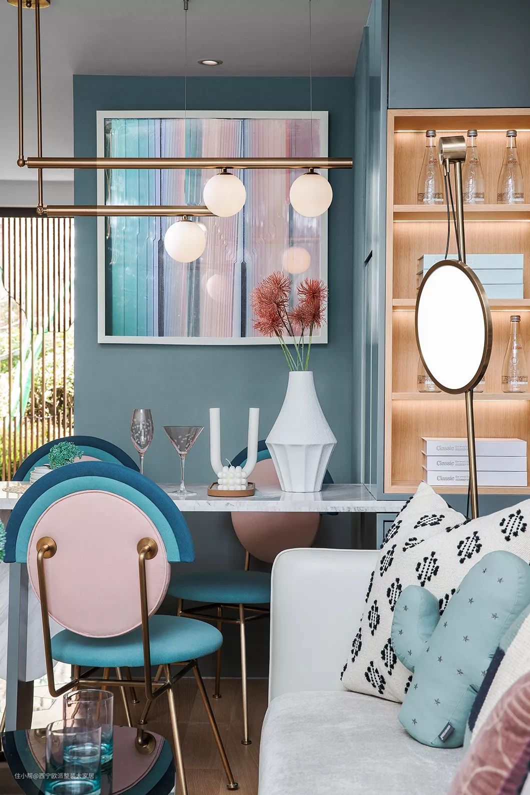 为了完成这次空间想象,出挑烂漫的马卡龙色是60㎡空间的格调塑造者与视觉氛围营造者。