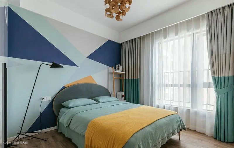 例如刷半墙、渐变、撞色、图形等上色方式,都是非常不错的选择,即便是简单的拼色设计,也能让床头墙显得简约大气。