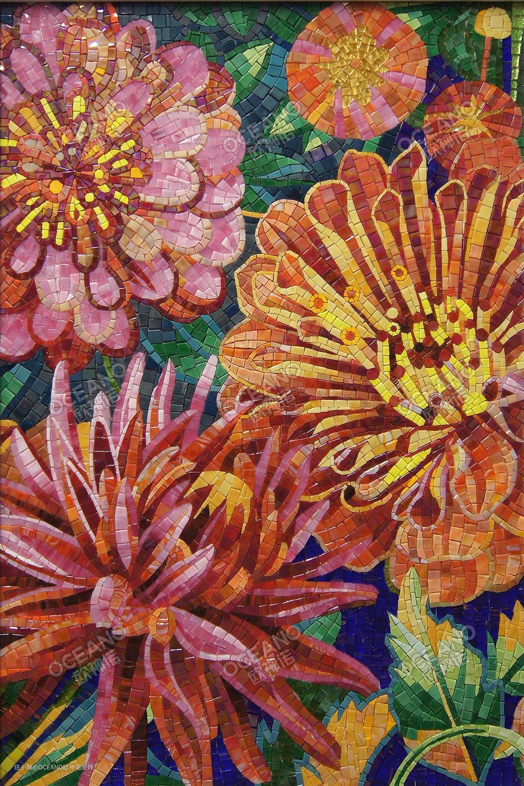 花朵是大自然最美的造型语言,用马赛克拼贴出花团锦簇的剪画。