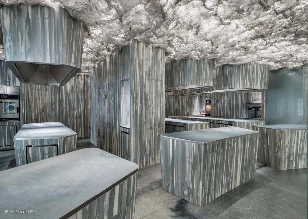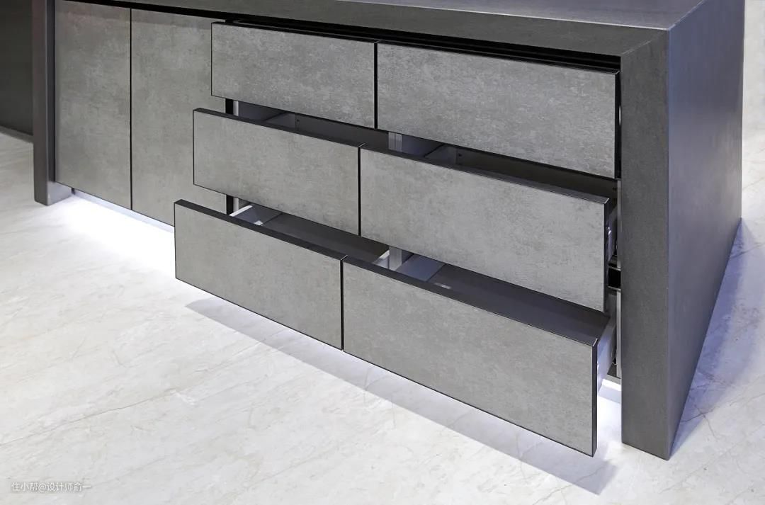 在实际的使用当中,岩板与家具的配合度也很高,轻、薄、柔、可塑性强等特性,也是它的本质。