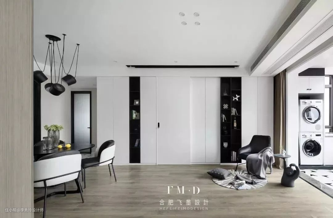 将不那么完美的瑕疵隐藏起来,自然也是提高空间颜值的设计。隐形门可以与木饰面、壁纸、护墙板、乳胶漆结合装饰。想要更好的隐形效果,建议不装门把手,可以选择闭门器合页。可以选择现场手工完成,对工艺要求高,要选有设计经验的装修公司。