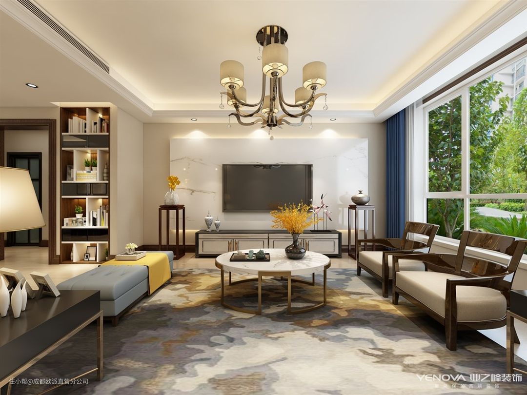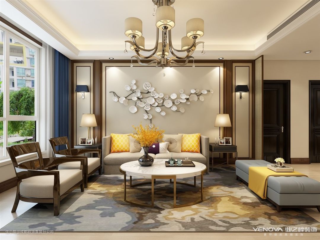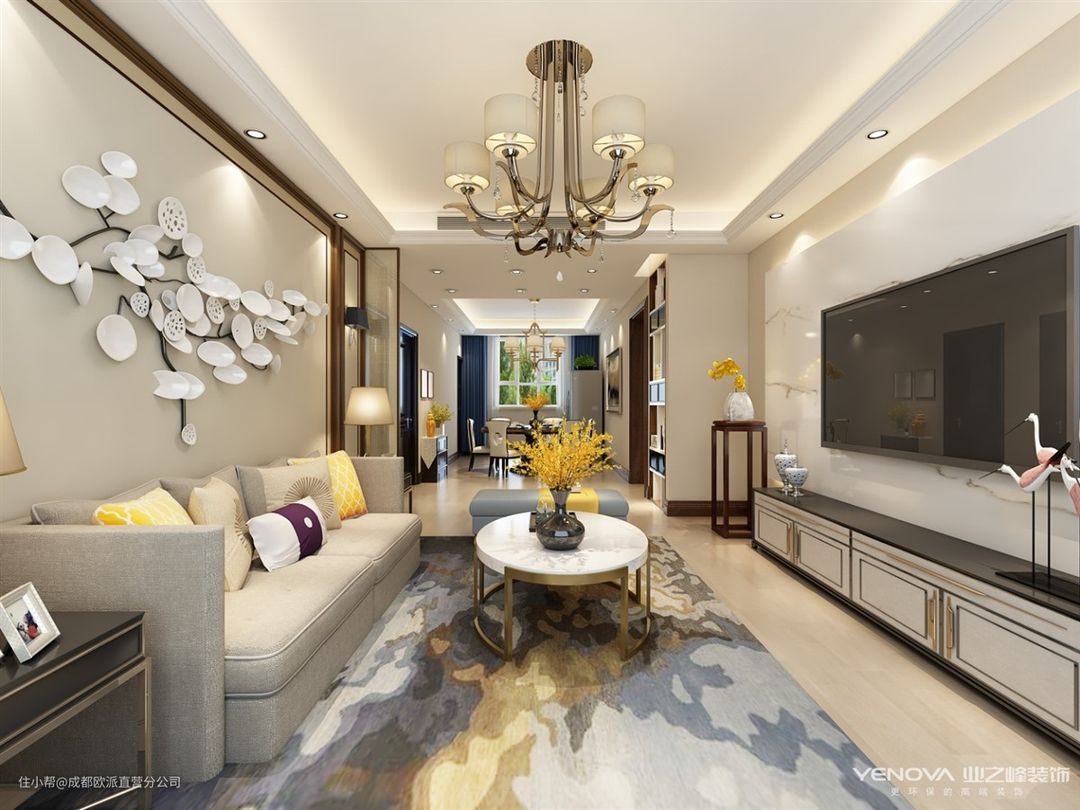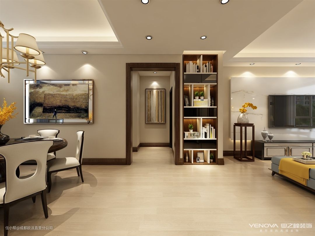 保利花园-138㎡新中式风格成都欧派直营分公司2021-03-18本案例设计说明风格定义为新中式,新中式不仅继承了传统中式的韵味以及古朴的感觉而且也适当的融入了现代的元素在里面,这样既不会感觉太过厚重又有现代的时尚感在里面。本案大面积运用色块,线条,铸就主体风格,配饰,随意摆放的抱枕,时尚灯具等,都透露出新中式独有的家的味道。