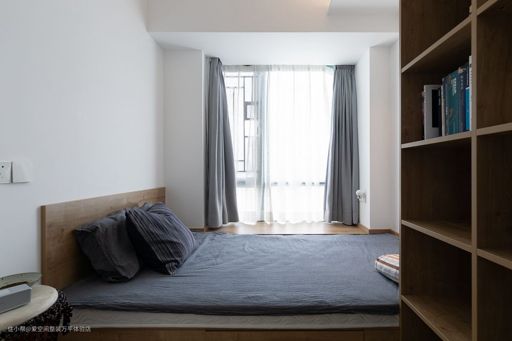 次卧沿飘窗设计了榻榻米,一致的高度让床铺空间得到了延伸,显得宽敞。