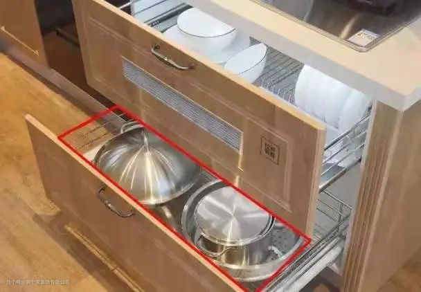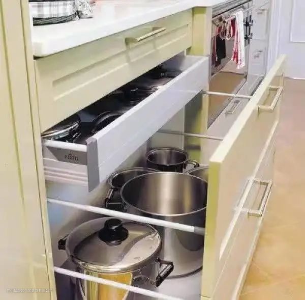 橱柜主要考虑的是厨具家电,如果想把锅放到橱柜里面收纳,那么橱柜的抽屉就要特意设计得高一些。