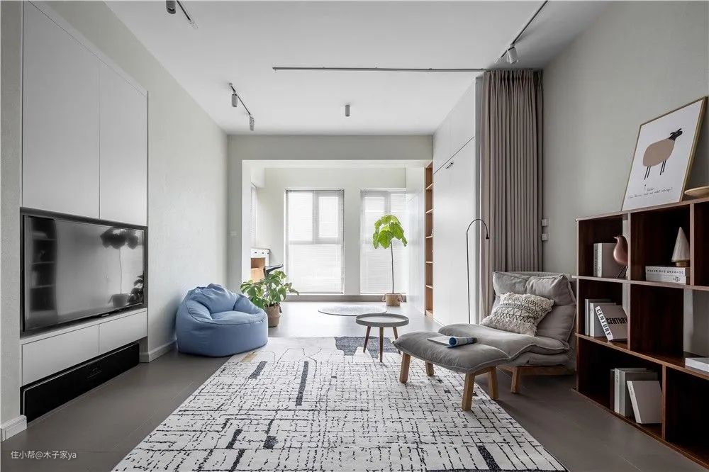 筒灯和射灯是无主灯常见的灯具类型,如果没有做吊顶,明装筒灯和射灯较为常见,特别是轨道射灯是时下很流行的选择。如果有做吊顶,选嵌入式筒灯射灯更好。