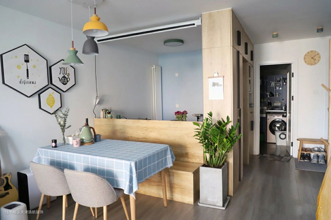 很开心能给大家带来属于屋主他们夫妻人生第一套新房,是一套二手房,主要是在这里入住习惯了,所以才决定买了下来。户型不大,加上室内空间不大,也就是我们常说的奇葩户型。没请设计师,奇葩户型夫妻俩花心思设计。辛苦几个月的奔波和劳累,见证了家的成长。从最开始的拆拆到最后设计出想要的风格,真的很开心与幸福。考虑到层高比较低,不做吊顶,并且利用餐厅区域设计卡座,打造极简实用的温馨小窝。如果你家也是奇葩户型,建议多多感受哈。