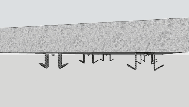 另外,不管侧板是木板还是金属骨架,均需单独安装吊筋,且间距建议≤1200mm;若侧板造型较重,则需采用角钢作为吊筋,吊筋与木侧板造型用对接螺栓固定。