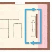 如果像下方这样布置客厅,访客从沙发到阳台(或室外)就必须绕一圈,并与生活动线交汇,这不是一个明智的选择。