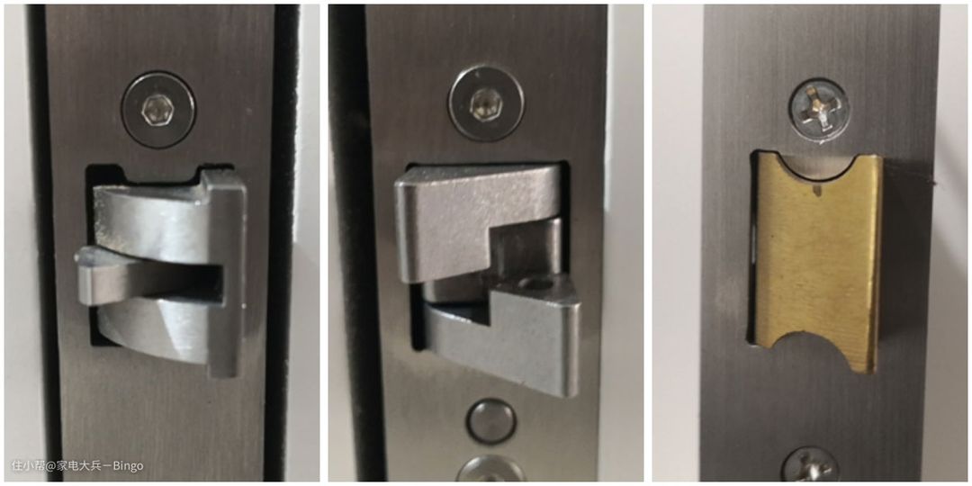 2、斜舌没有防卡片开启设计的指纹锁不要选(半自动锁),半自动锁不会自动落锁/延迟落锁,如果出门忘记反锁,使用硬卡片开锁也非常的快。