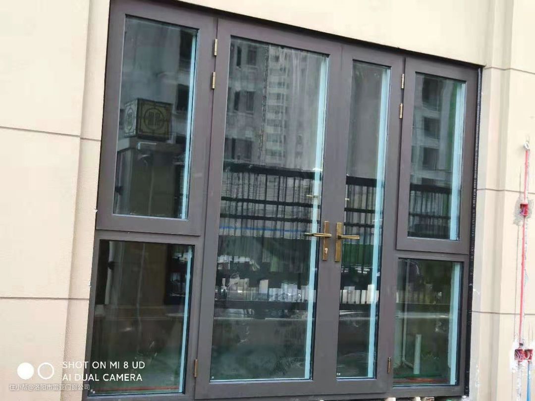 颜色还是采用和物业一样的要求,和其它门窗一样的外观,但门窗材质,一定要用断桥铝,而且得用门料达到的国标厚度,开启方向不用推拉窗,用平开对开门联窗,这样过人时开门,通风时开窗,还带着防盗金钢网防盗纱窗。