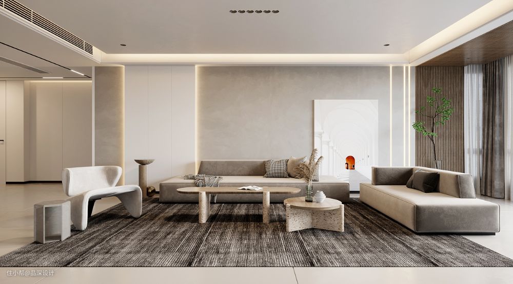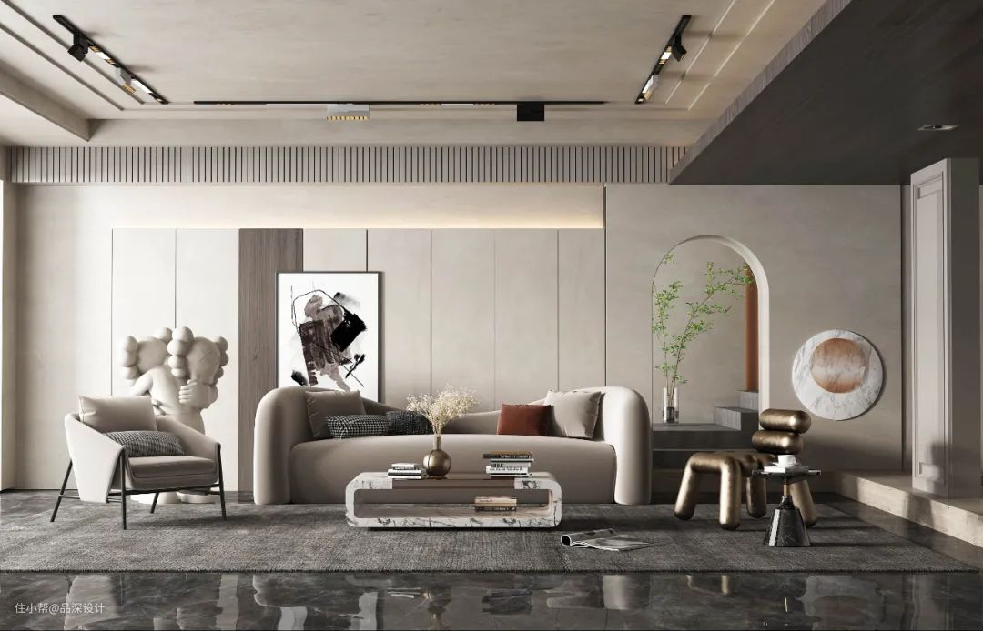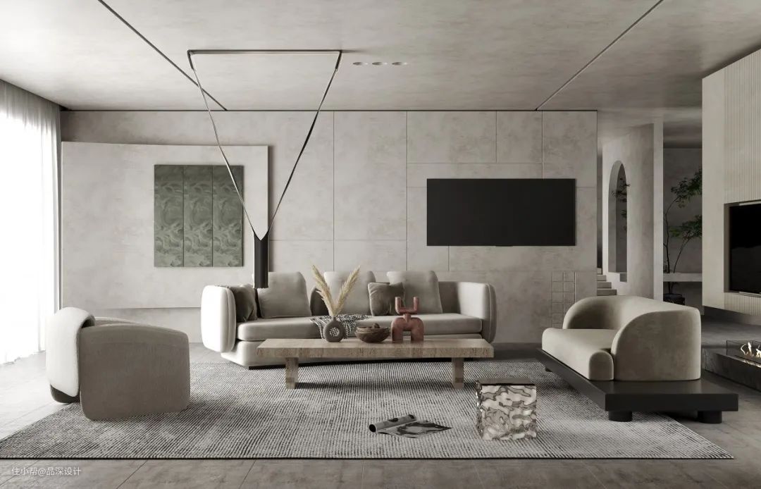 艺术涂料在家居中的应用非常广泛,沙发背景墙使用的话可以更好地贴合整体设计风格。极简风格下无造型背景墙颇多,同时可以使用几种颜色拼接或者与其他材质混搭。常见的艺术涂料有:水泥漆、微水泥、马来漆等。具体每个材料的特性,可以这里了解:什么是水泥漆?、火了侘寂风,红了微水泥!、什么是马来漆?
