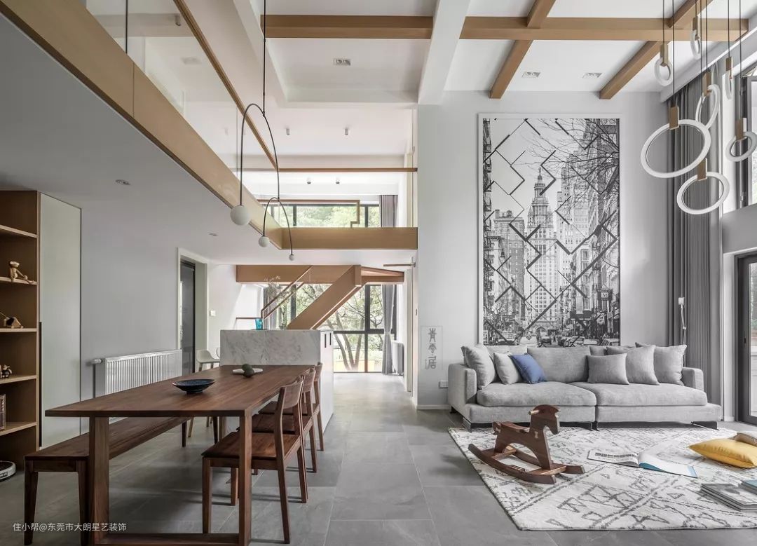 以梁遮梁,一条梁体存在感很强,多加几条梁体就能弱化其存在感,让头顶"大梁"的感觉不那么的明显。